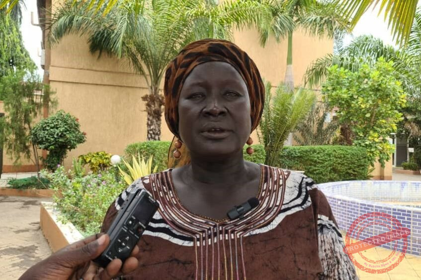Rebecca Yar Dor, Executive Director of Widows and Orphans Development Agency speaking to the media in Juba on Tue, 26th March 2024. Photo Credit: Charles Wote | Eye Radio.