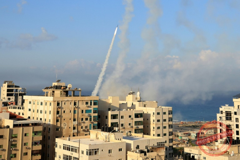Rockets are fired from Gaza City towards Israel (MAHMUD HAMS/AFP)