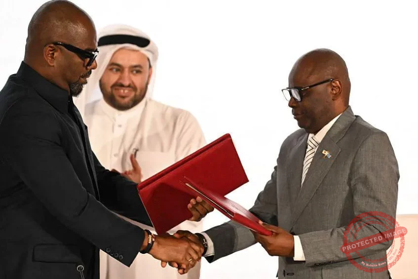 Congolese envoy Sumbu Sita Mambu shook hands with M23 secretary Benjamin Mbonimpa at the signing in Doha|Courtesy