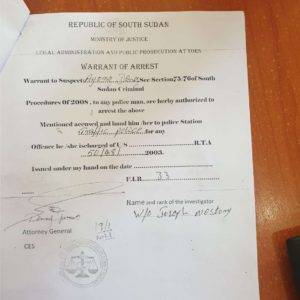 But the office has been served with several official documents, including a warrant of arrest against the driver identified as Ayong Deng.