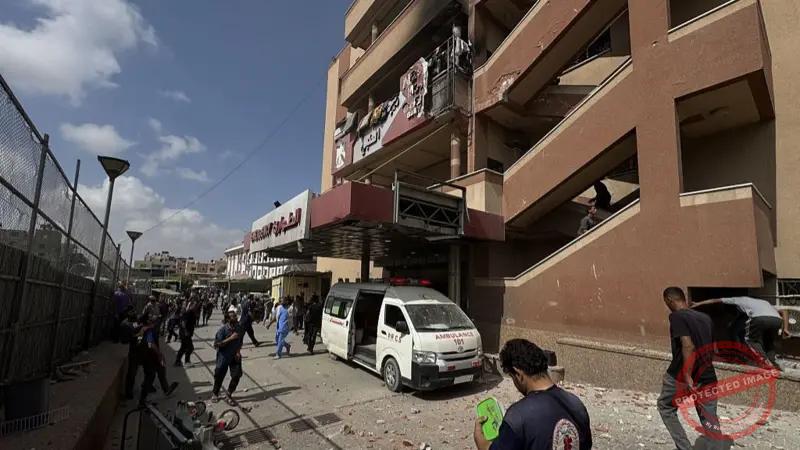 At least 20 people, including five journalists, are reported to have been killed in an Israeli strike on a hospital in the southern Gaza Strip.