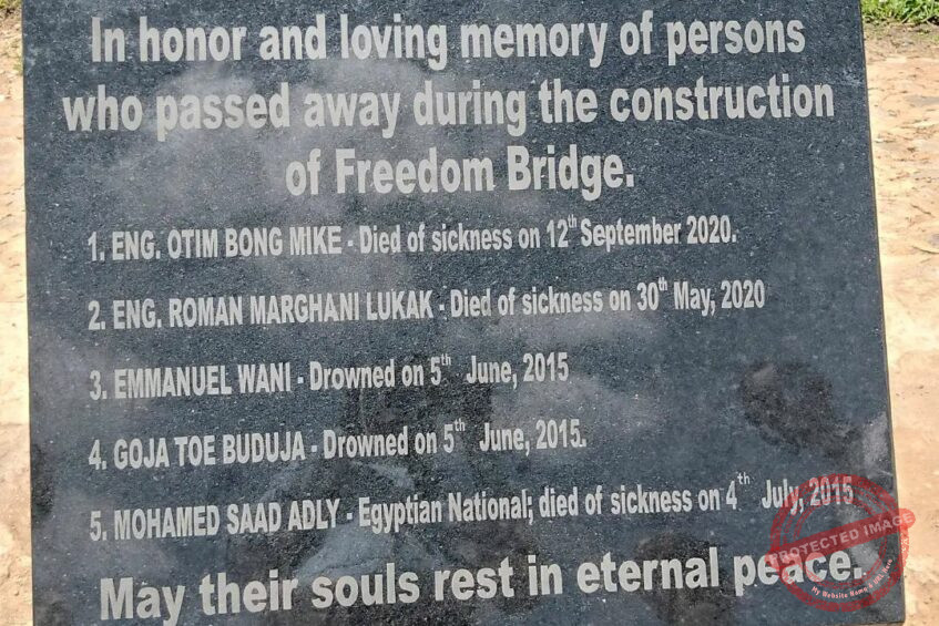 A monument has been built in honor and memory of five workers including two engineers who died during the construction of Freedom Bridge in Juba.