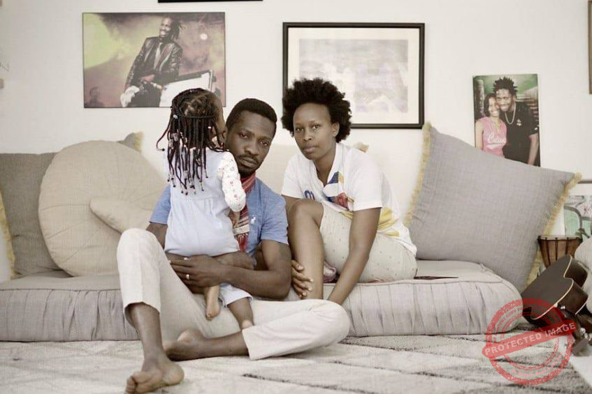 Bobi Wine and wife stuck with an 18month old baby (relative) at his Kampala home, which has been surrounded by military and police personnel. The baby’s father is being prevented from picking her up| Credit | Courtesy