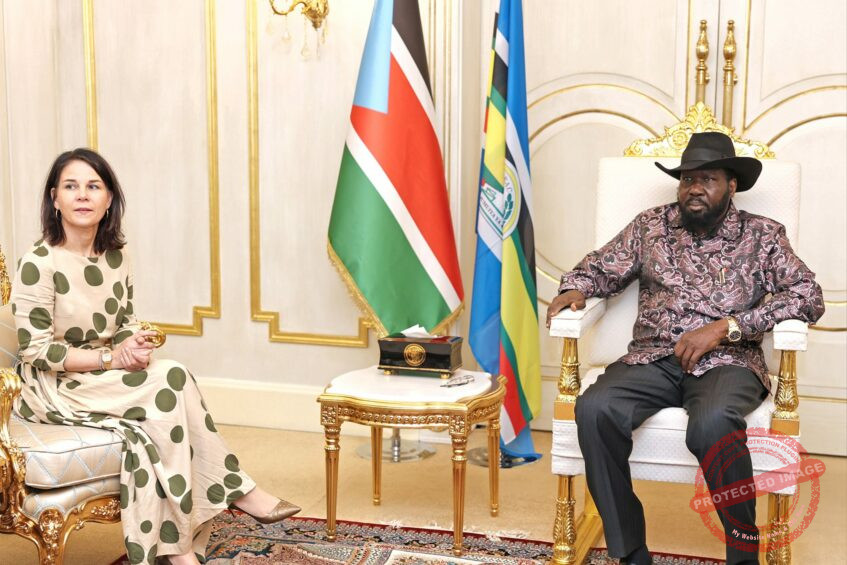 President Salva Kiir and visiting German Minister of Foreign Affairs Annalena Baerbock met on Friday to discuss the implementation of 2018 peace agreement and the upcoming elections.