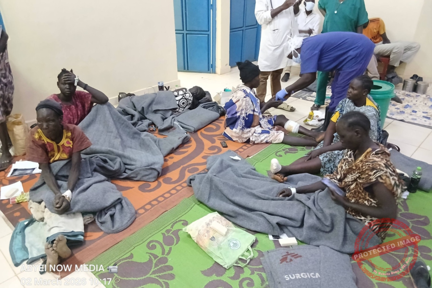 Patients receive medical care at the Doctors Without Borders hospital in Abyei on Monday, March 2, 2026. The Head of the Abyei Special Administrative Area, Judge Charles Abyei Juok, visited the facility this morning to meet with those injured in the recent attack - Photo Credit: Abyei Chief Administrative Area Office