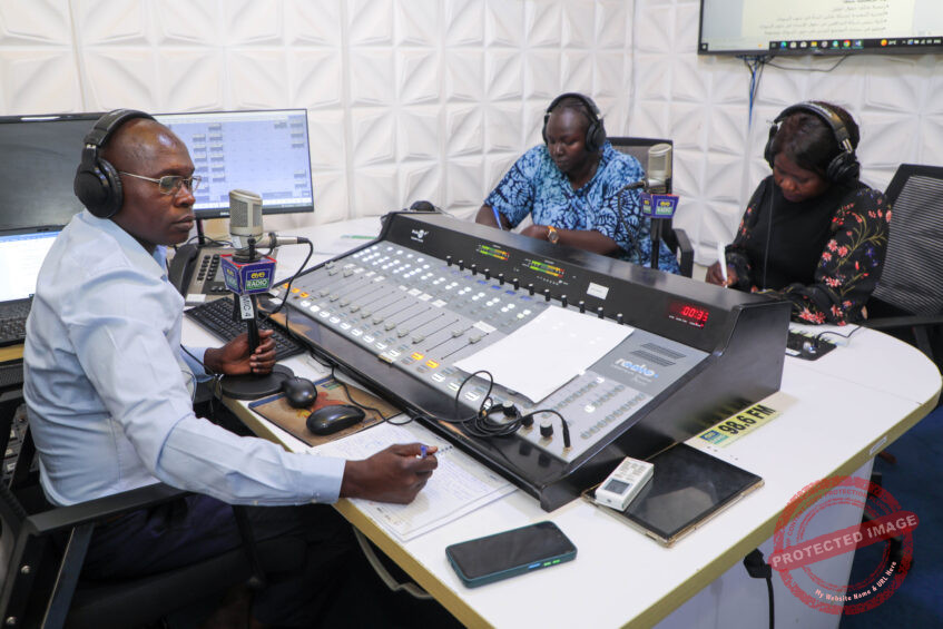 (L-R) Michael Atit, Adut Christina and Agnes Zera during a live broadcast on Eye Radio on Wednesday, April 15, 2026 – Credit: Darlington Moses/Eye Radio