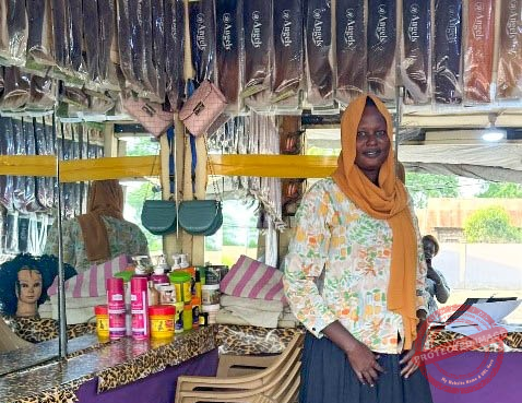 Nashwa Jabir Jafal is a Sudanese refugee who fled to Juba in 2011. She runs a salon with four employees, creating job opportunities in the community.