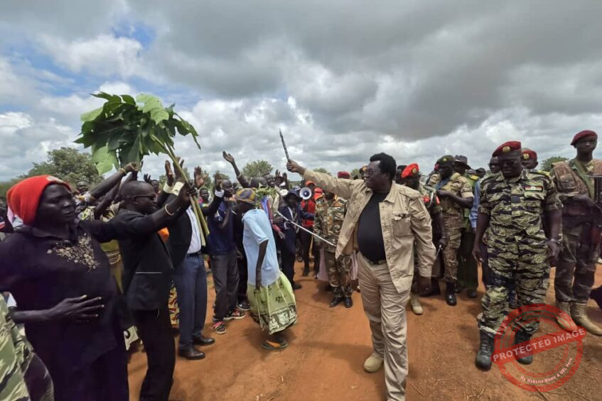Gen. Augustino Jadalla is surrounded by heavy security force|Courtesy of CES Press Unit