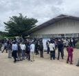 Traffic police officers involved in the accident lay still on the tarmacked Yei road in Juba on Tuesday, October 13, 2020. |Credit//Emmanuel Aligo