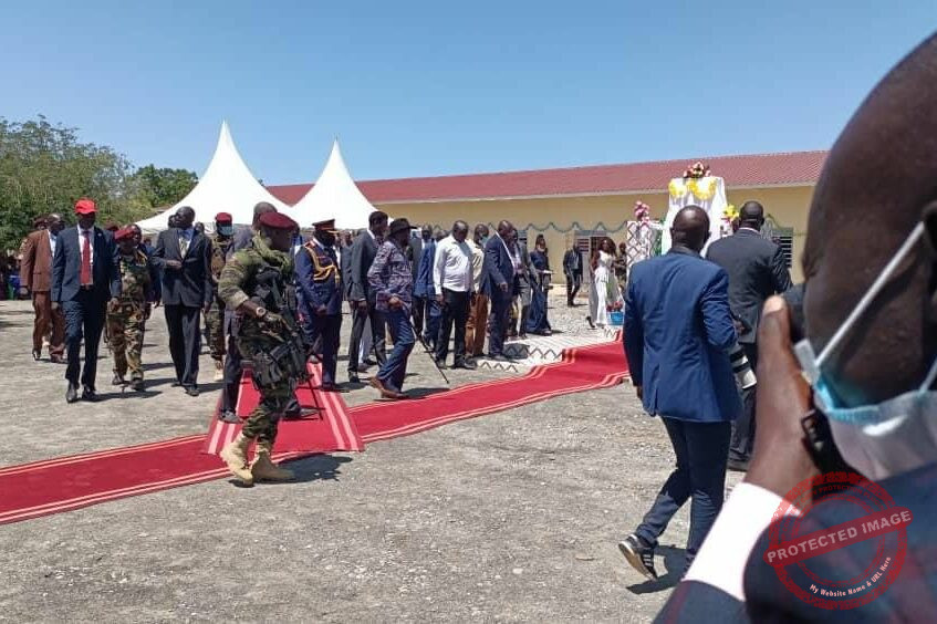 President Salva Kiir arrived in Bor, Jonglei State to inaugurate triple-complex building at Dr John Garang Memorial University. | (Photo: Courtesy.)