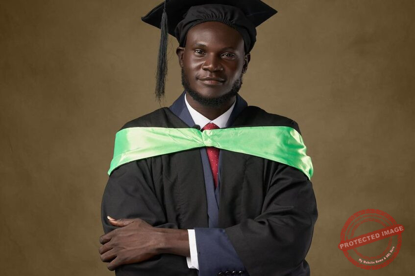Eye Radio reporter Wol Mapal pose for Photo following his graduation at the University of Juba - File photo