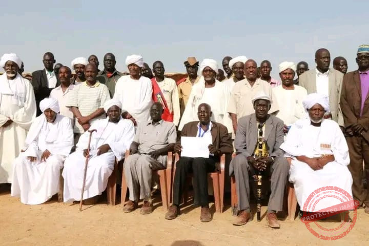 Chiefs from the Rezigat and Dinka Malual communities at a peace conference last year. (Courtesy).