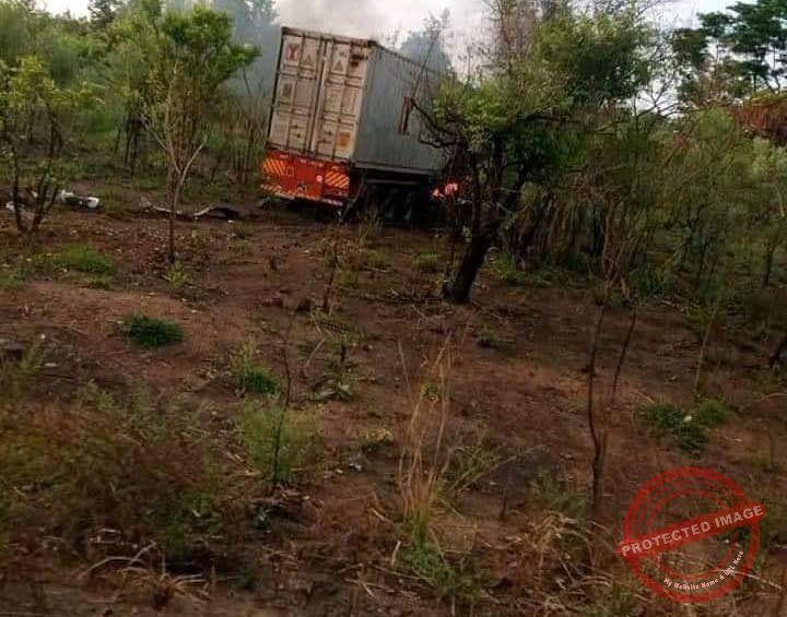 A truck attacked in road ambush in South Sudan veered off the road/Courtesy photo.