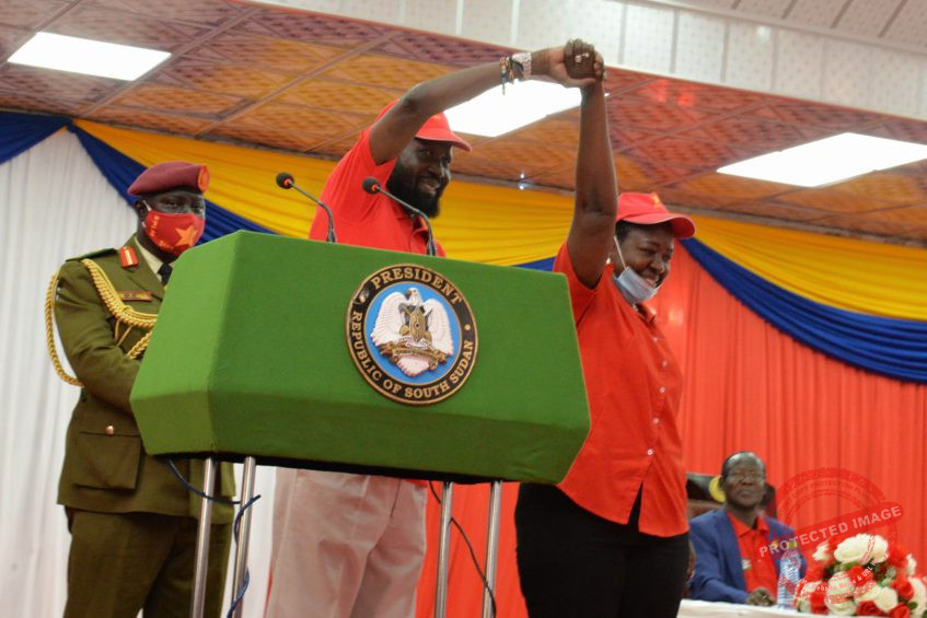 SPLM Chairman Salva Kiir presents Jemma Nunu to the SPLM members after her nomination as Speaker of the TNLA on Friday, July 23, 2021 in Juba. Credit| Office of the President