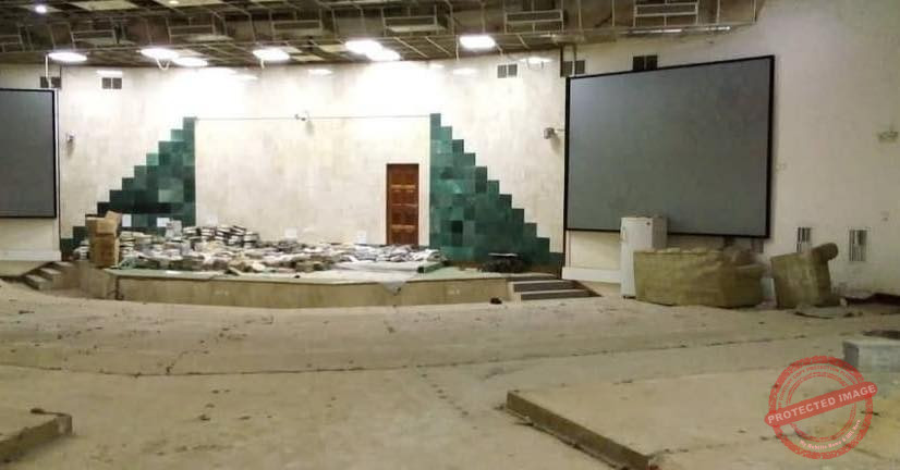 Pictures circulating online shows the parliament in a sorry state – with chairs removed from the dusty hall, and the corridors piled with broken furniture and office files.