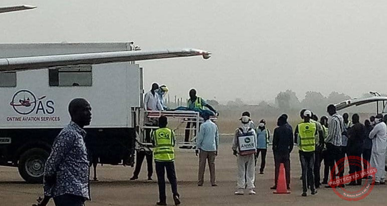 Health workers put the body of unidentified passenger on an ambulance at JIA on Friday, Feb 19, 2021 | Credit | Ayom