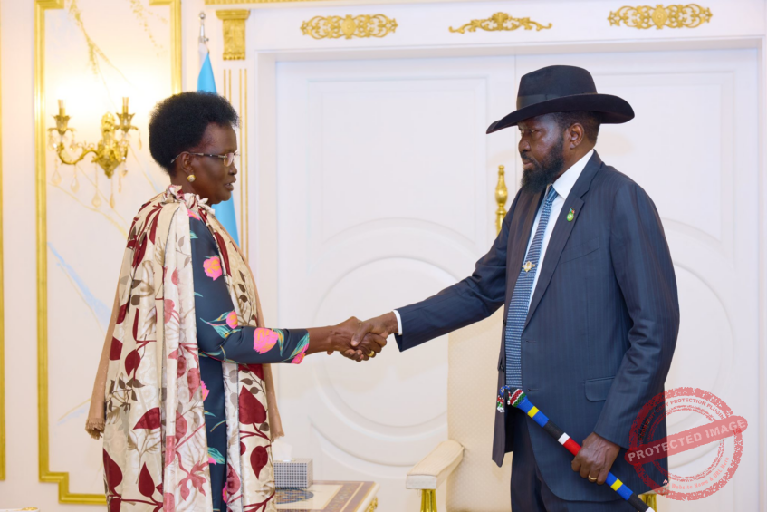 Juba, Central Equatoria (Eye Radio) –President Salva Kiir met with Vice President Rebecca Nyandeng on Monday at the State House in Juba, where she briefed him on her recent official visit to Uganda and her meeting with President Yoweri Museveni.