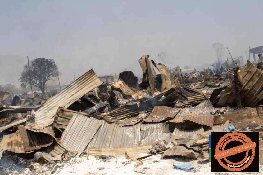 The wreckage of shops at Juba's Customs Market on Tuesday, December 1, 2025, following the massive overnight fire that caused significant losses for hundreds of traders. (Photo: Eye Radio/Moses Awan)