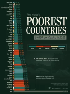The IMF’s list of the 50 poorest countries by GDP per capita shows that the majority of low-income nations remain concentrated in Sub-Saharan Africa, that are faced with persistent challenges such as conflict, weak institutions, climate vulnerability, and low investment in infrastructure and education.