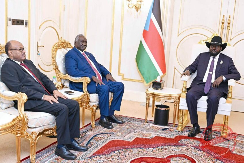 President Kiir (right) meet Sudan Vice President Malik Agar (center) on the situation in Sudan. | Photo: Office of the President/Facebook