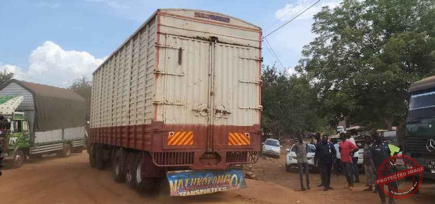 One of the trucks impounded on Thursday, May 22, at Nimule border for carrying substandard goods, now being re-exported to Uganda – Courtesy.
