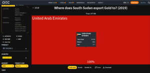 But according to export data from the Observatory of Economic Complexity (OEC), in 2019, South Sudan exported $47.6M in Gold, making it the 112th largest exporter of Gold in the world. In the same year, Gold was the 2nd most exported product in South Sudan.