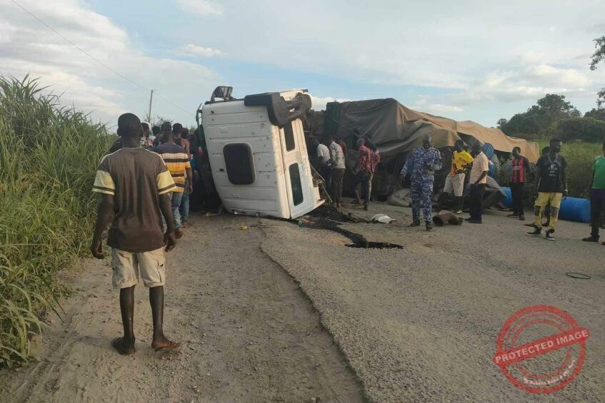 Commercial truck overturned along Juba-Nimule highway, killing the driver. | Courtesy.