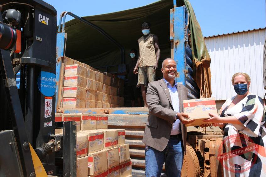 USAID representative hands over Ready-to-Use Therapeutic Food to UNICEF on Wednesday, June 9, 2021 | UNICEF