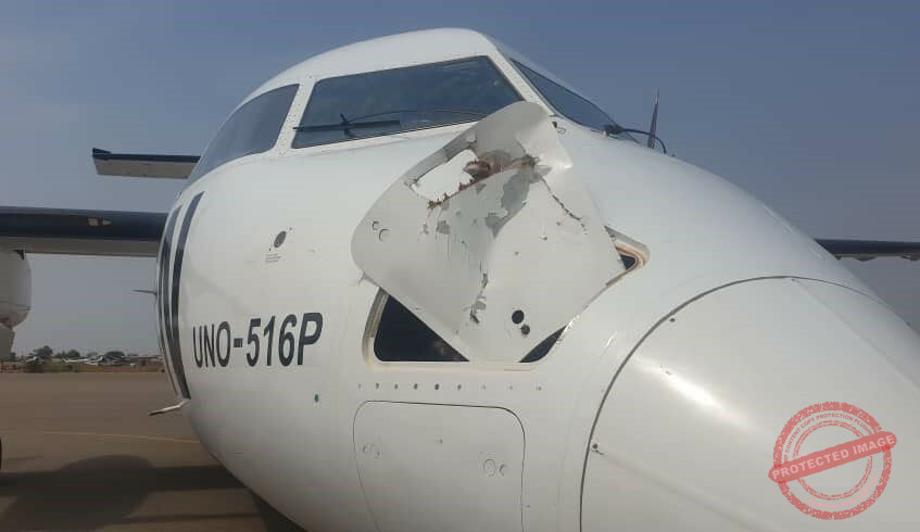 United Nations charter plane forced land at Juba International Airport due to a bird strike. (Photo: Eye Radio)