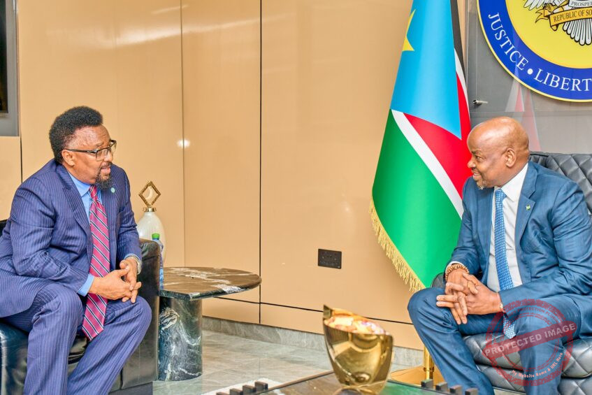 JUBA, South Sudan (Eye Radio) – Vice President Dr. Benjamin Bol Mel and the Somali Ambassador, Jamal Hassan Khalif, met today, Wednesday, to discuss deepening bilateral and economic relations between the two East African nations.